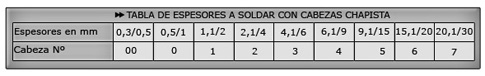 SOPLETES Y CORTADORES//SOPLETE M3 TABLA DE ESPESORES A SOLDAR CON CABEZAS CHAPISTAS